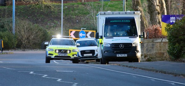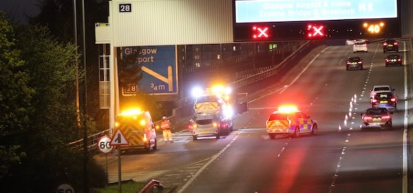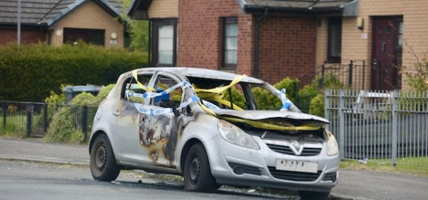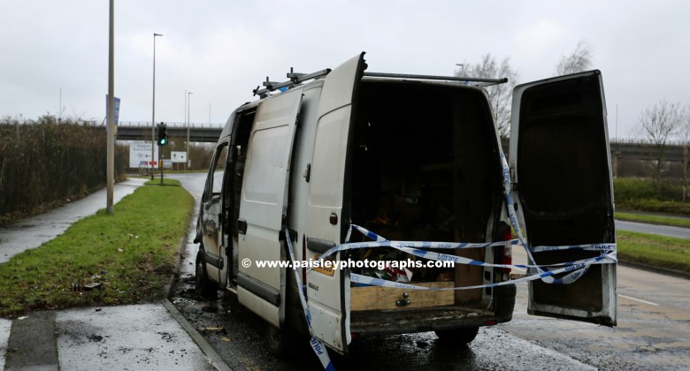A burnt-out white van has been cordoned off on the A726 towards the St James interchange after it caught fire earlier this morning. Motorists reported seeing smoke coming from
