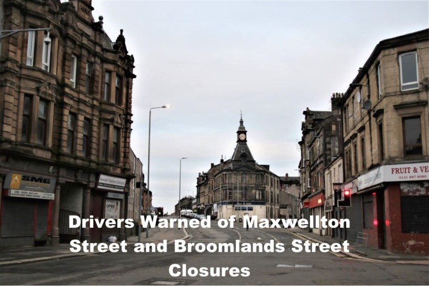Maxwellton Street and Broomlands Street in Paisley will close this month for carriageway resurfacing.