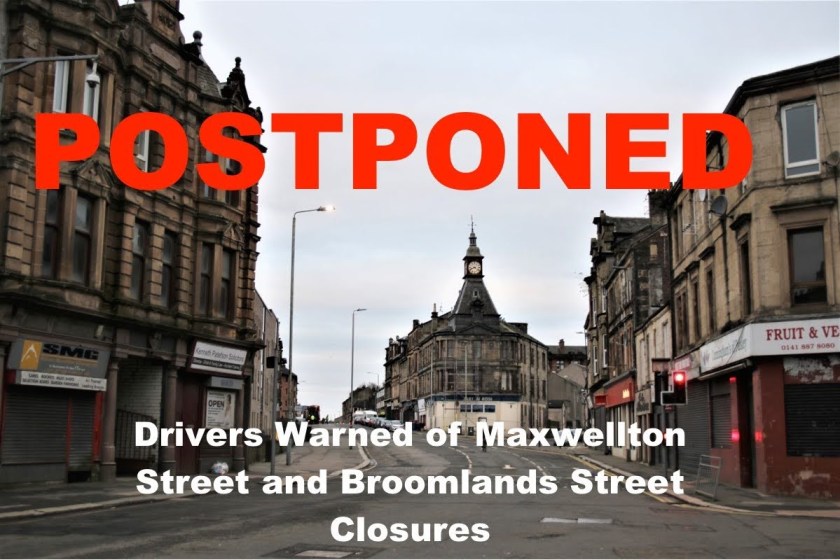 Roadworks scheduled for Maxwellton Street, Broomlands Street and Wellmeadow Street this month have been given a massive blow as works have been postponed by Renfrewshire Council.