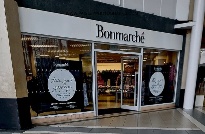 Bonmarche in the Piazza in Paisley will close today Friday 7th April, there will be no job losses as staff will be diverted to other stores.