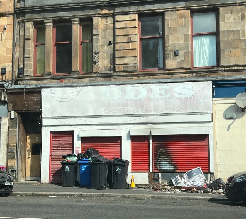 The fire which happened at wheelie bins located outside the former Geddes electrical shop in Broomlands Street which is located beside popular Paisley pub the Tartan Rose.