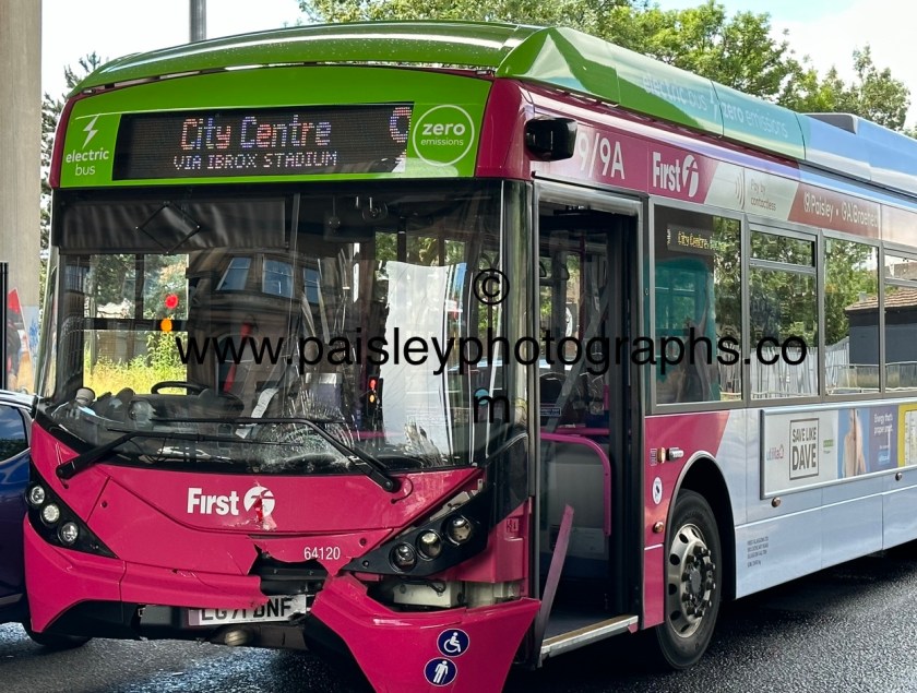 There is currently no reported injuries, it appears the bus has hit car at the lights below the M8 section on Paisley Road West.