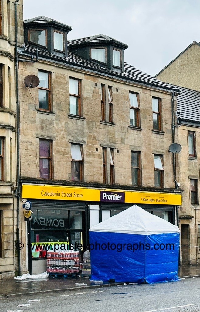 Caledonia Street remains closed from Albion Street/ Murray street Junction to underwood road this includes side roads to Andrew Street, Blythswood Drive, MacDowall Street,Glen Street and wellington Street.