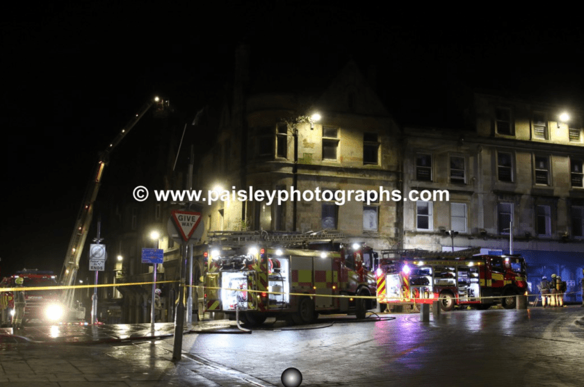 A host of emergency services raced to the scene at St Mirren Street around 10.30pm according to early reports to reports of a roof fire to what appeared to be the rear of the roof on the corner building.
