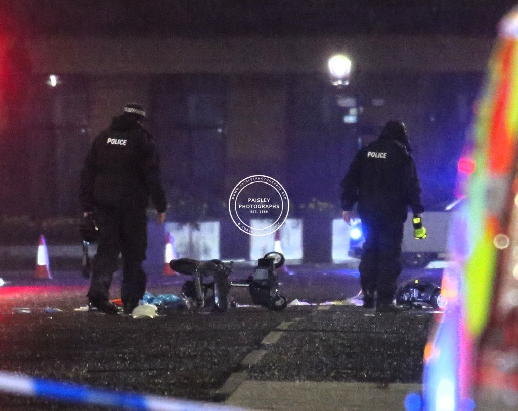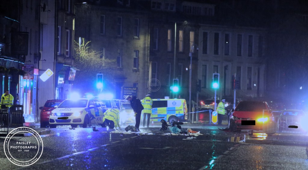 The tranquility of a rainy evening in Paisley was shattered last night as a car collided with a mobility scooter at a town centre crossing. The incident, which occurred near Silk Street, left those passing at the time in shock as emergency services rushed to the scene to assist the injured individual and secure the area.