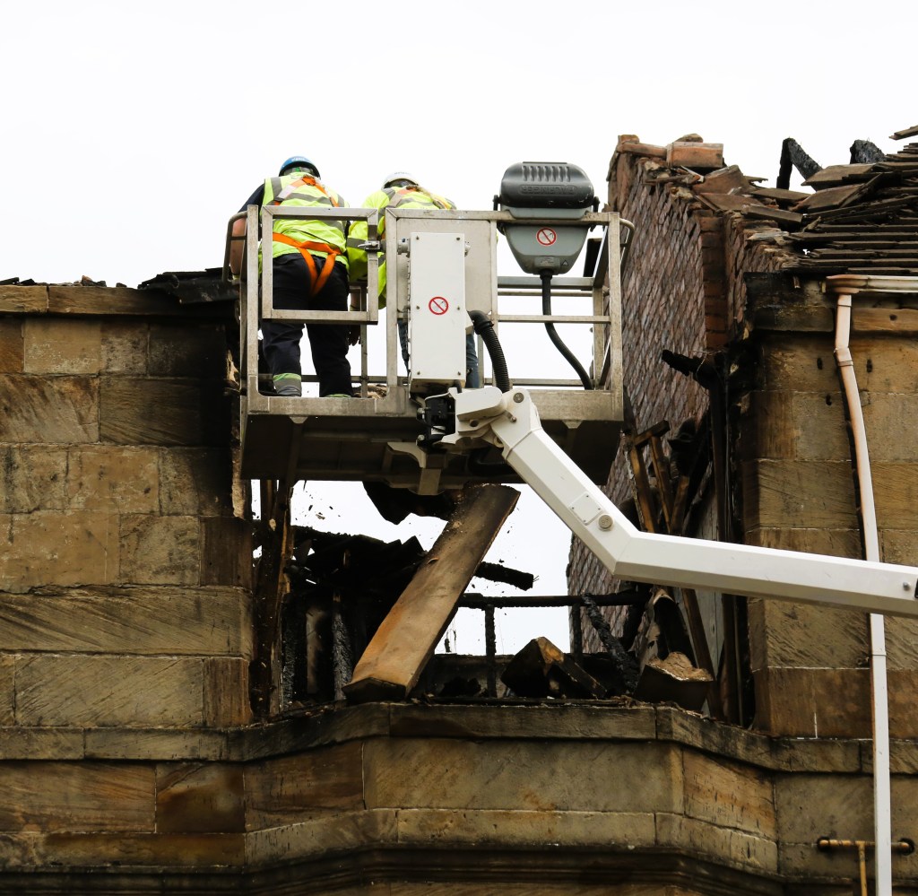 As of midday, demolition contractors from Reigart have been on the scene. Their primary task has been making the building safe, which has included the removal of sandstone lintels and uprights from the top windows. This careful and urgent work is essential to ensure the stability of the remaining structure and the safety of the surrounding area to pedestrians when the area is reopened.