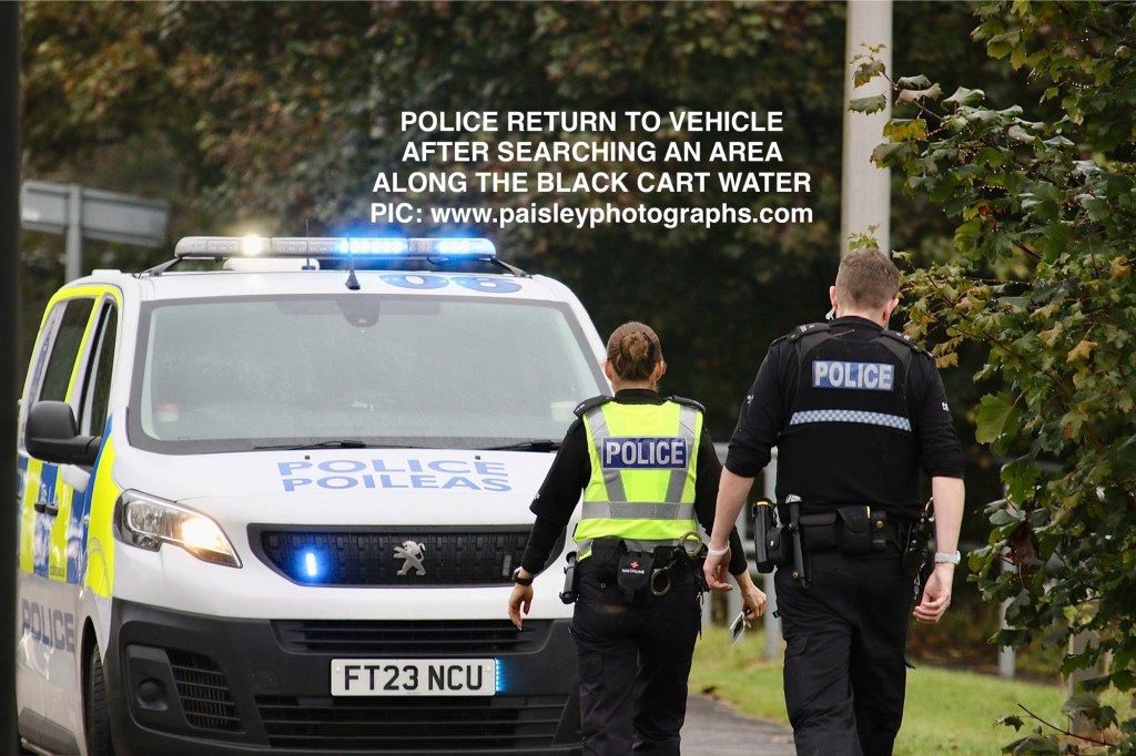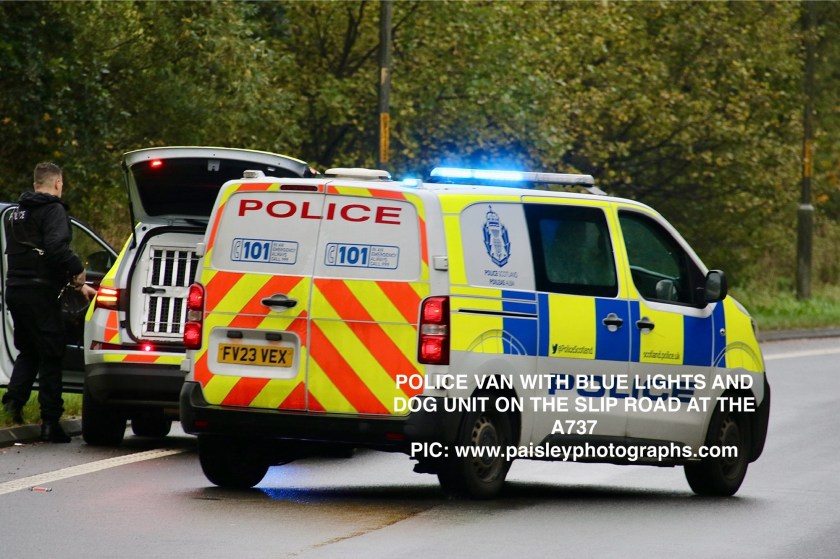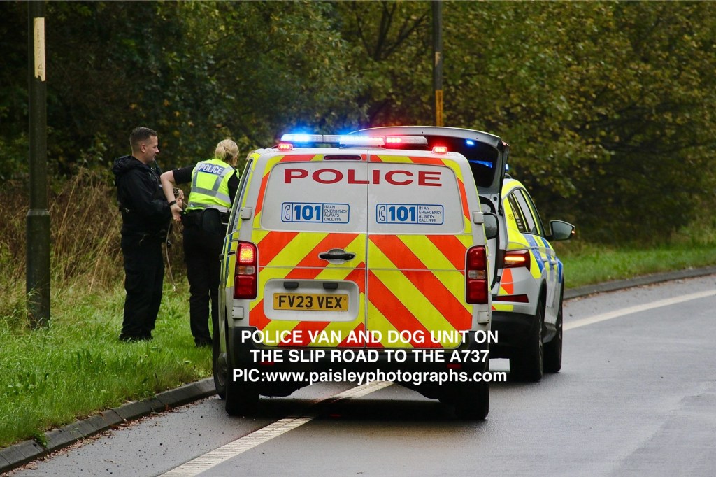 Police vehicles were seen pulled over at several key spots, causing a stir among onlookers and social media users alike. Officers were stationed at Linwood football pitches, while police and dog units were spotted on the slip road leading to the A737.
