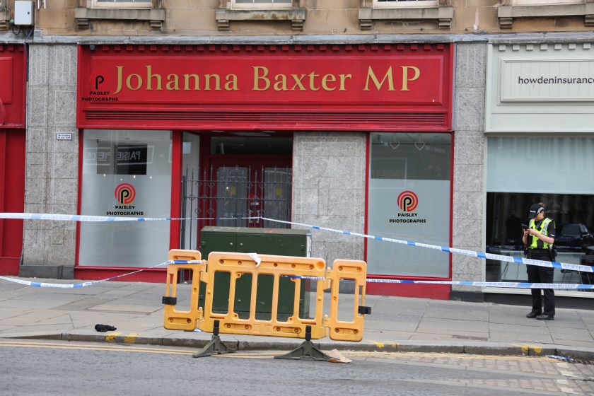 Police sealed off part of Causeyside Street in Paisley town centre this afternoon following an altercation outside the offices of Labour MP Johanna Baxter. The office was closed at the time of the incident.