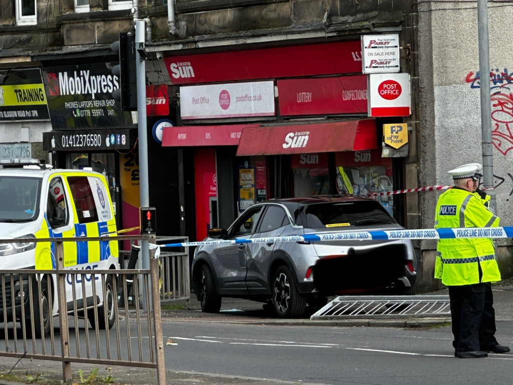 Glasgow Road in Paisley is closed due to a collision involving a pedestrian and a vehicle. Emergency services are on the scene.