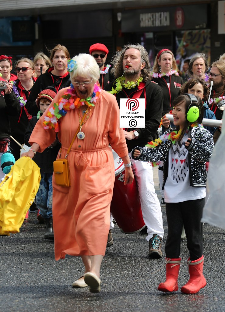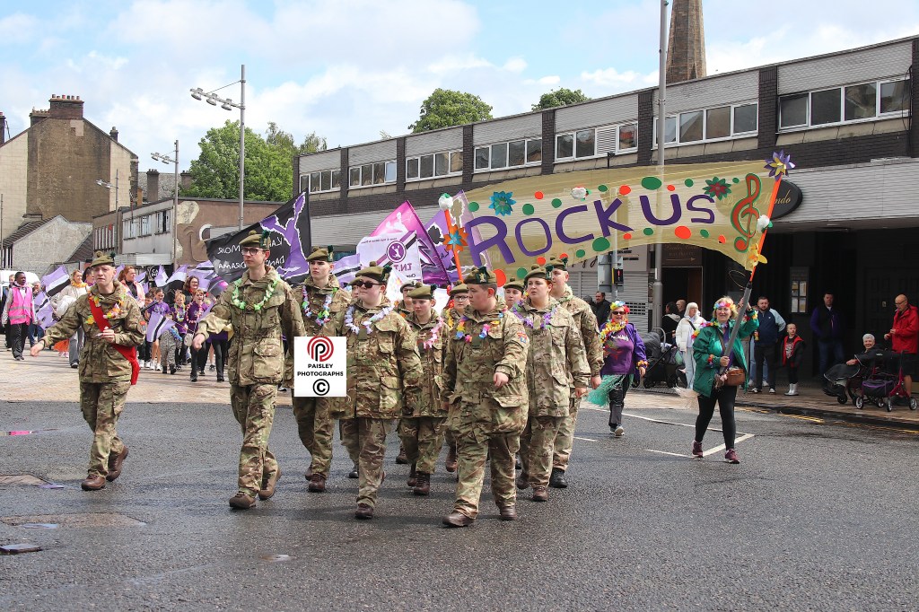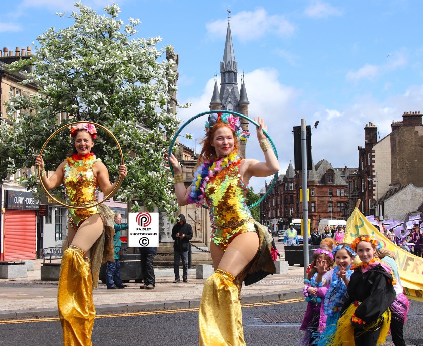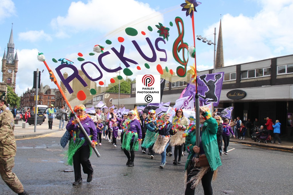 Also marching proudly were the 1st Renfrew Guides and 3rd Renfrew Brownies, Apelly group, and the Army Cadet Force. Entertainment was in full flow thanks to Rock-us Community Choir, Circus Alba, two impressive stilt walkers, and a vibrant display from Karen E Moir Dance and Drama.