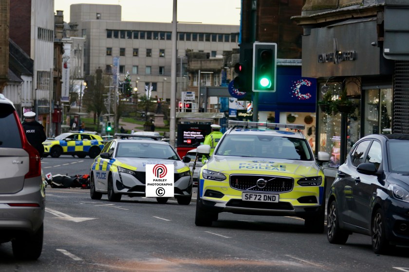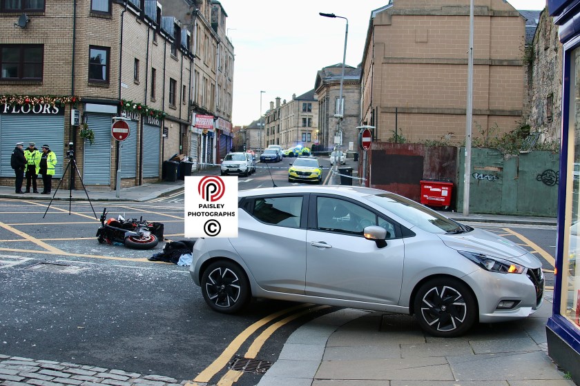 Road policing officers are appealing for information following a crash involving a motorbike and a car in Paisley.