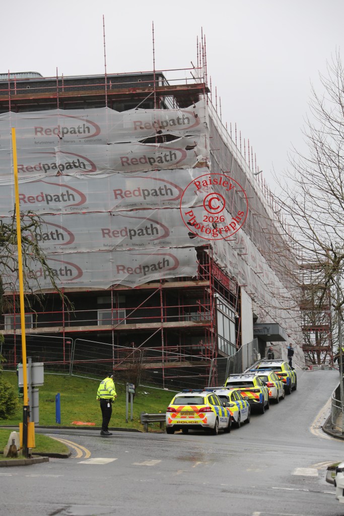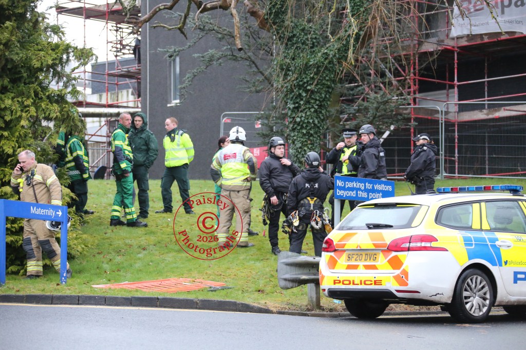 Emergency services responded to a serious incident at the maternity unit of the Royal Alexandra Hospital in Paisley this afternoon after concerns were raised for the safety of a woman who had climbed onto scaffolding at the building.