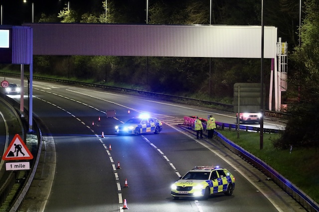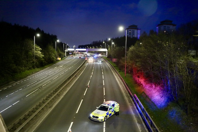 It’s emerged a police officer was rushed to hospital after being struck by a police vehicle during the incident on the M8 last night.
