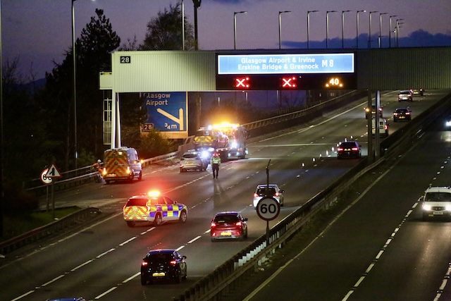 The collision happened on the slip road at junction 27 of the M8 westbound at around 7.40pm on Saturday, April 18.