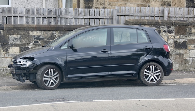 Motorists passing the area reported seeing the damaged car at the roundabout, with traffic slowing briefly as the situation was dealt with.