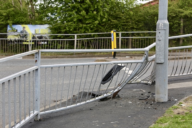 A car crashed into a crash barrier at the roundabout near the TA Centre on Hawkhead Road at around 11am this morning.