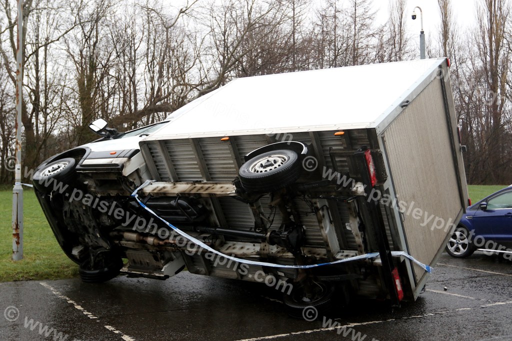 The town of Paisley bore the brunt of the storm’s ferocity, with tree branches scattered across many areas. Castlehead and Seedhill saw significant debris, while Glencairn Court in Gallowhill experienced a dramatic incident where a van was blown onto its side, landing on top of a parked car. No injuries have been reported, but the damage is extensive.