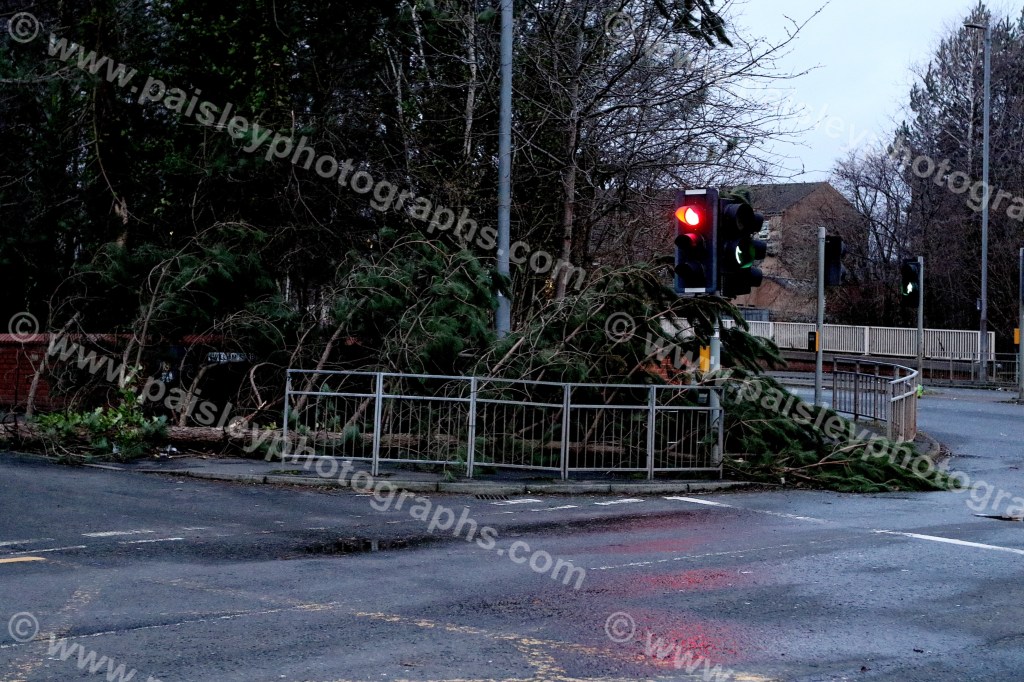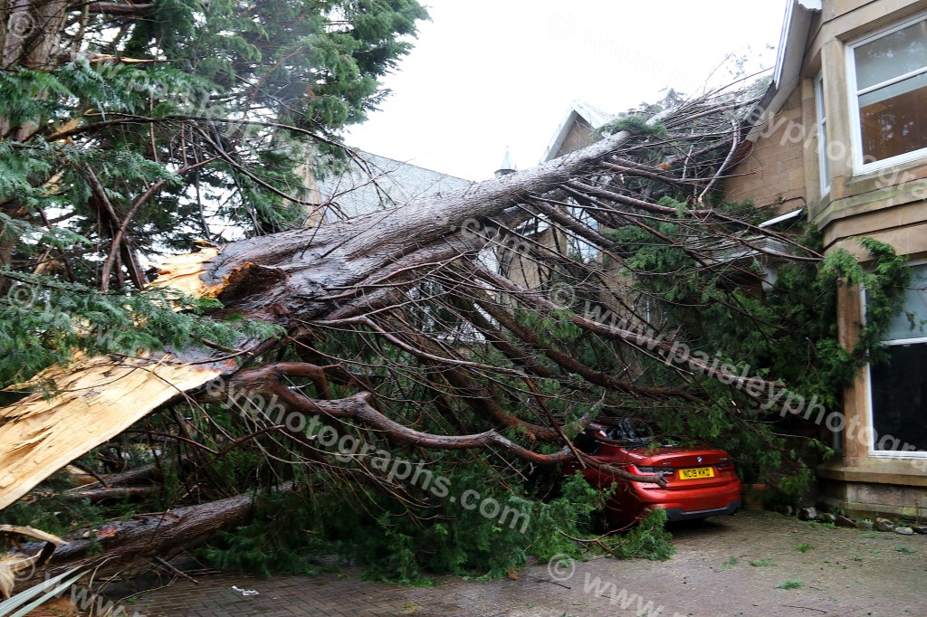 In Renfrew, Paisley Road saw a large tree split under the sheer force of the winds, crashing into a nearby house and damaging a car along the way. The residents have been offered temporary accommodation while repairs are assessed.