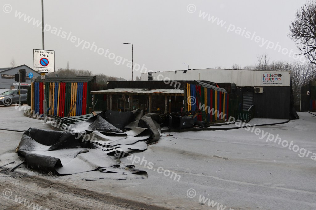 Little Tots nursery in Abercorn faced severe damage as strong winds tore the roof off the building, with sections landing on the road. Thankfully, the nursery was empty at the time, avoiding what could have been a far worse outcome. Teams are working to secure the site and ensure the safety of passersby.