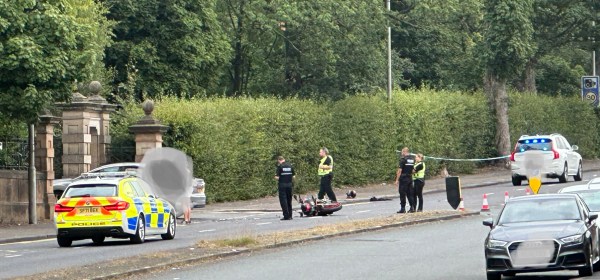 Glasgow road closed from junction with Arkleston Road to up past Barshaw Park due to accident with car and motorbike.