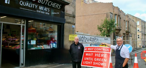 Graeme’s the Butchers, a well-known shop serving the community for years, reported fewer people through its doors this morning. The cause appears to be the new road filter lane, introduced to manage traffic while demolition work takes place nearby.