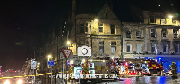 Paisley Cross is tonight closed due to an earlier fire at St Mirren Street. A large emergency service presence is on scene due to the
