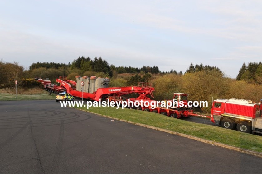 S P Energy Networks announced ” we’re moving a 197 tonne electricity transformer ( with equipment its over 400 tonne ) in two stages starting this weekend, from Windyhill Substation to Neilston Substation by road and river. The transformer will be used as part of a major project to reinforce the electricity network in the area. This essential work will help support our communities and the UKs commitment to Net Zero.